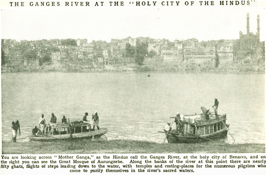 Born in northern India, in an ice-cave beneath the Himalayan snows, Ganges, the sacred river of the Hindus, breaks through the last mountain barrier just above ancient Hardwar. At first scarcely more than a series of broad shoals, long deep pools and rapids, the river keeps to a south-easterly course until Cawnpore is reached, that blackest spot on the Indian conscience, for here on a flight of steps. Massacre Ghat, leading down to the Ganges, 600 women and children were killed during the Indian Mutiny of 1857.
