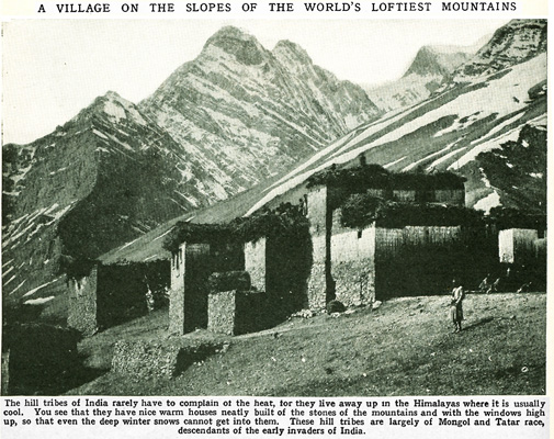 ascend to the source of the sacred Ganges for seasons of penitence and prayer. To people coming up from the steaming heat of the valleys, the greatest marvel of all is the snow-mantled, jagged ridge-pole of this roof of the world." The name Himalaya is from two Sanskrit words which mean " dwelling-place of the snow".